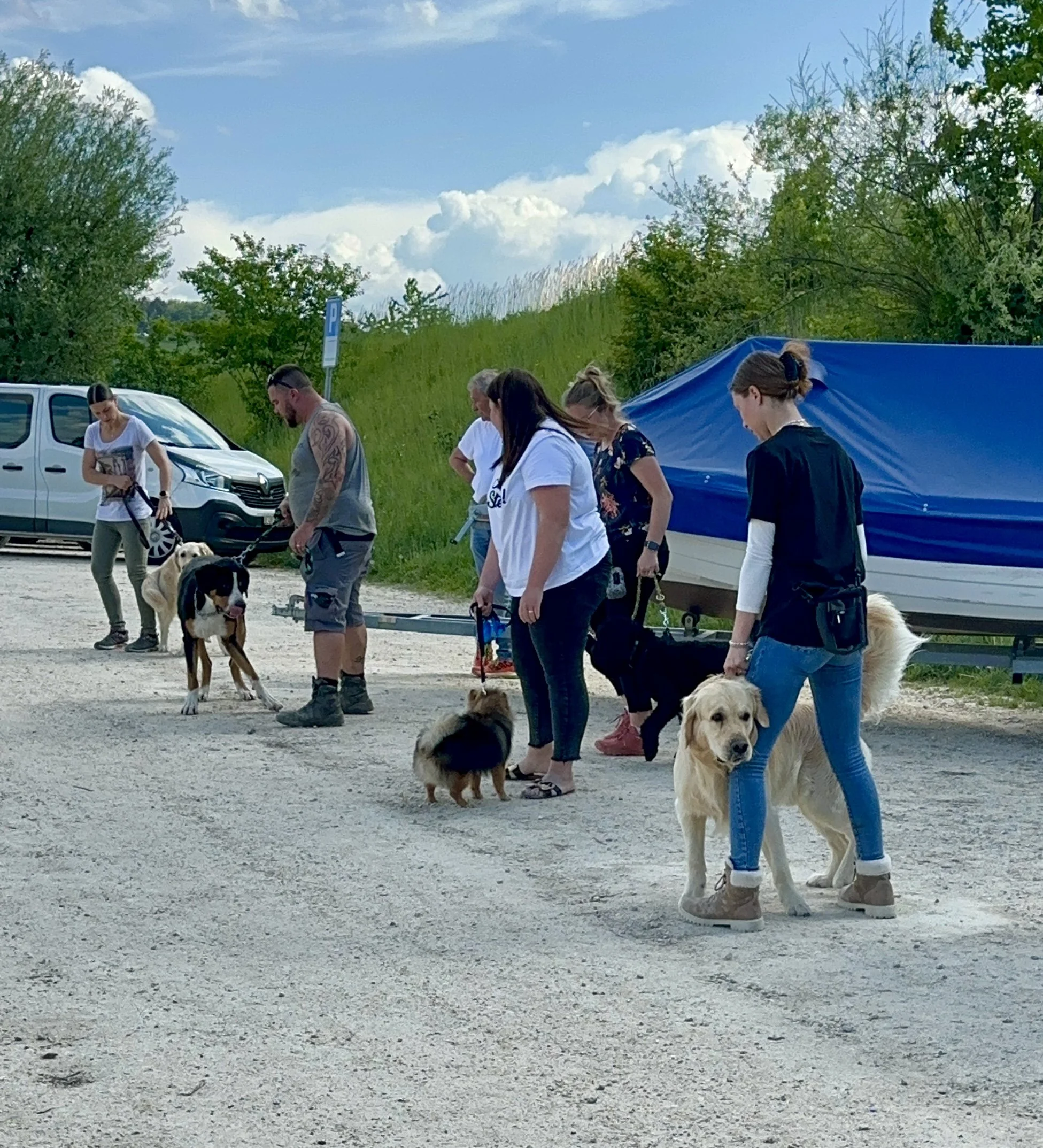 Jeder Kursteilnehmer hat nach oder während des Trainingskurses die Möglichkeit, an unserer Gruppenstunde teilzunehmen. Wir treffen uns an unterschiedlichen Orten, beispielsweise im Wald, am See, in der Stadt oder an häufig frequentierten Spazierwegen. Die Gruppenstunde dauert ca. 1 - 1,5 Stunden, findet jeweils einmal im Monat an einem Samstag morgen oder an einem Abend statt.