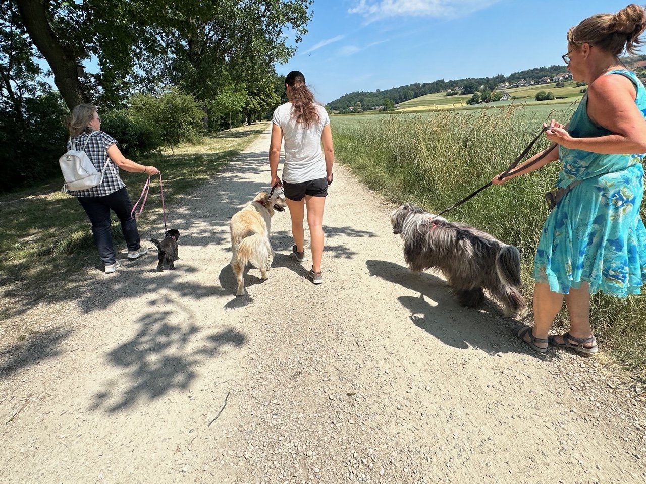 Mit einer Gruppenstunde können wir das Verhalten des Hundes mit anderen Hunden oder an speziellen Orten spezifisch trainieren