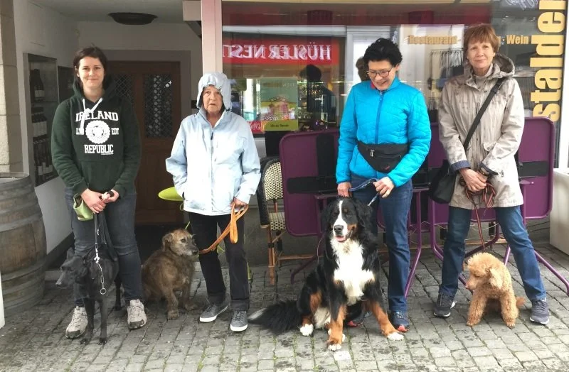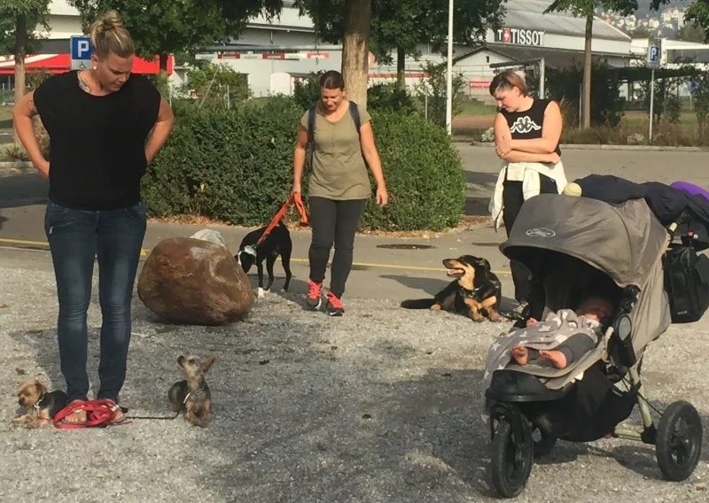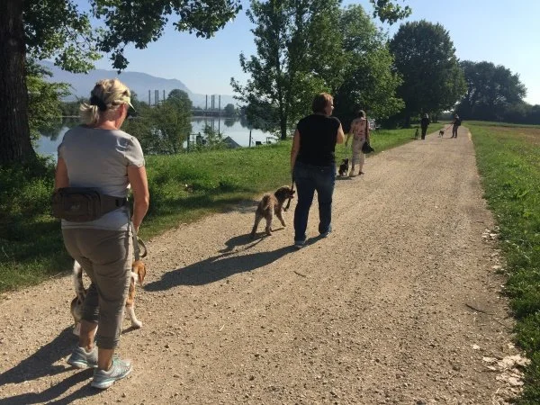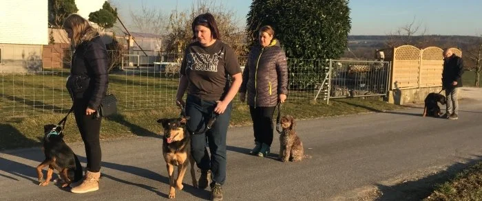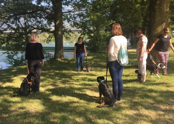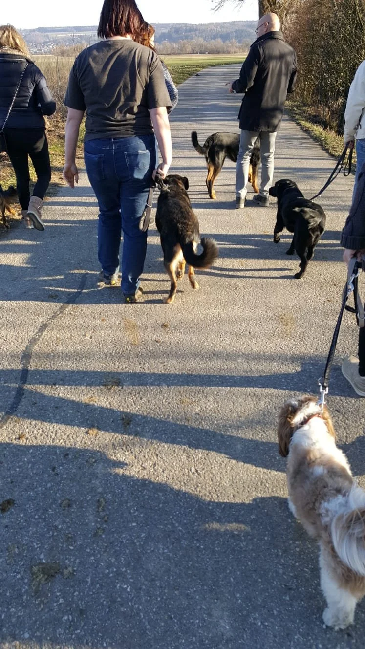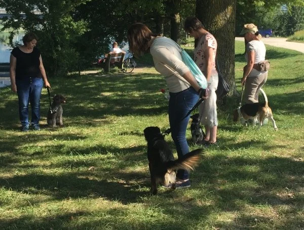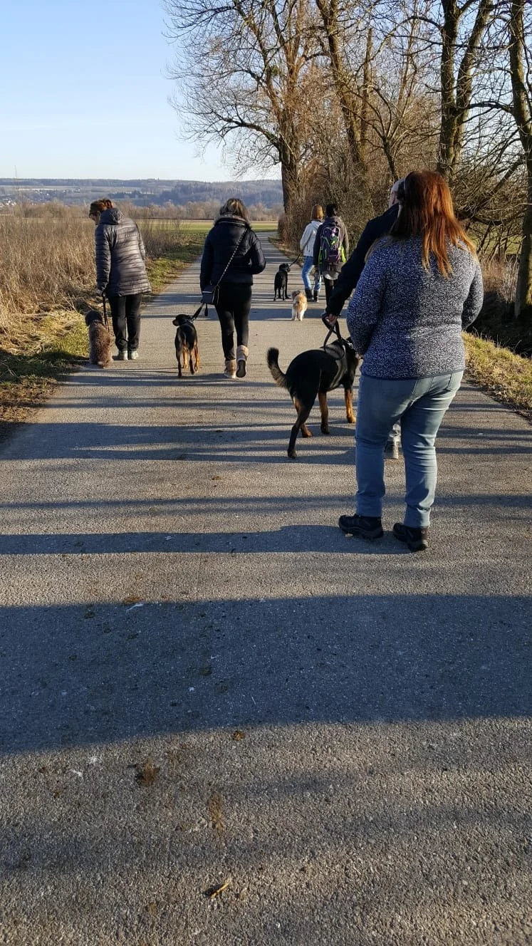 Jeder Kursteilnehmer hat nach oder während des Trainingskurses die Möglichkeit, an unserer Gruppenstunde teilzunehmen. Wir treffen uns an unterschiedlichen Orten, beispielsweise im Wald, am See, in der Stadt oder an häufig frequentierten Spazierwegen. Die Gruppenstunde dauert ca. 1 - 1,5 Stunden, findet jeweils einmal im Monat an einem Samstag morgen oder an einem Abend statt.