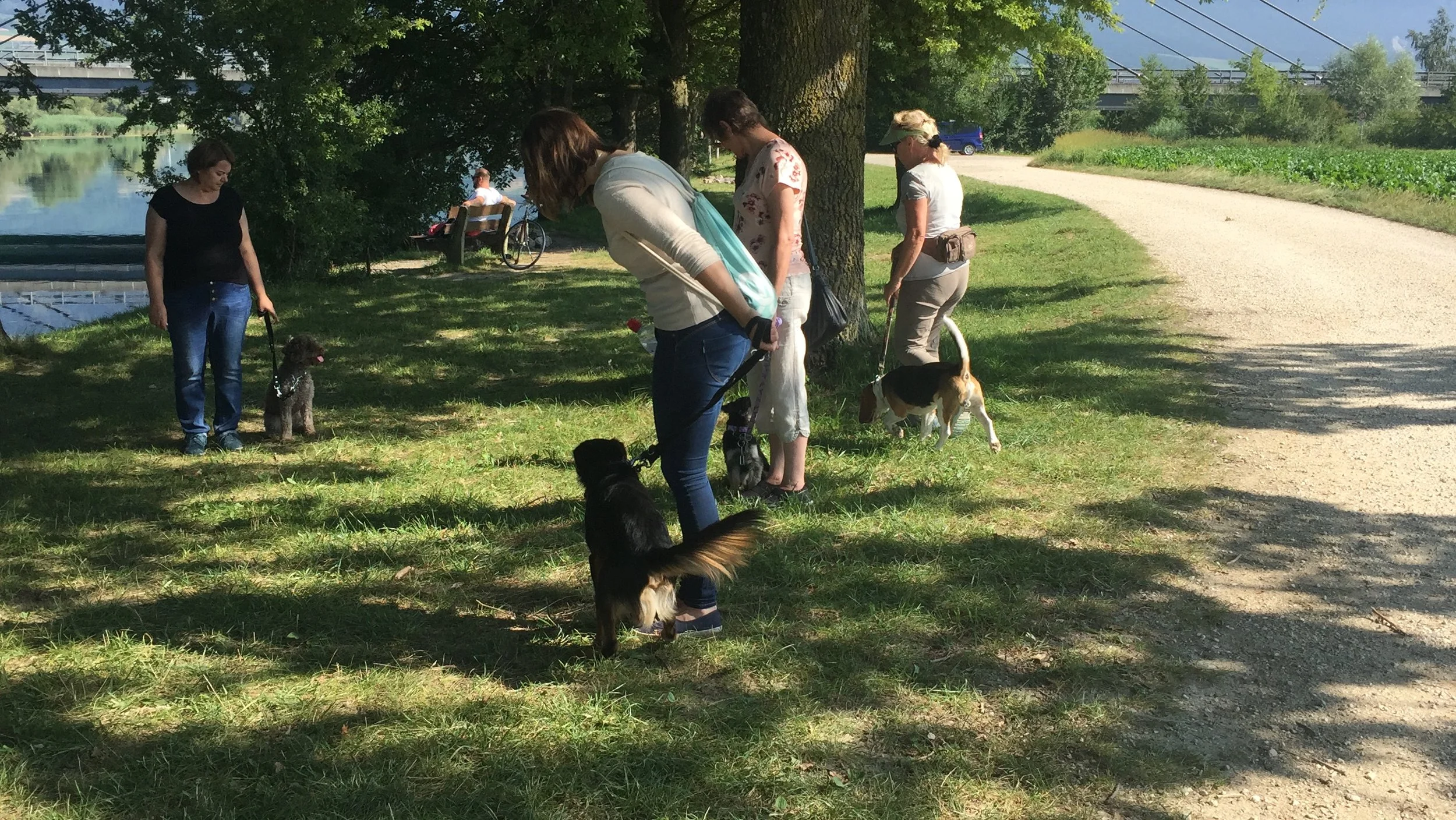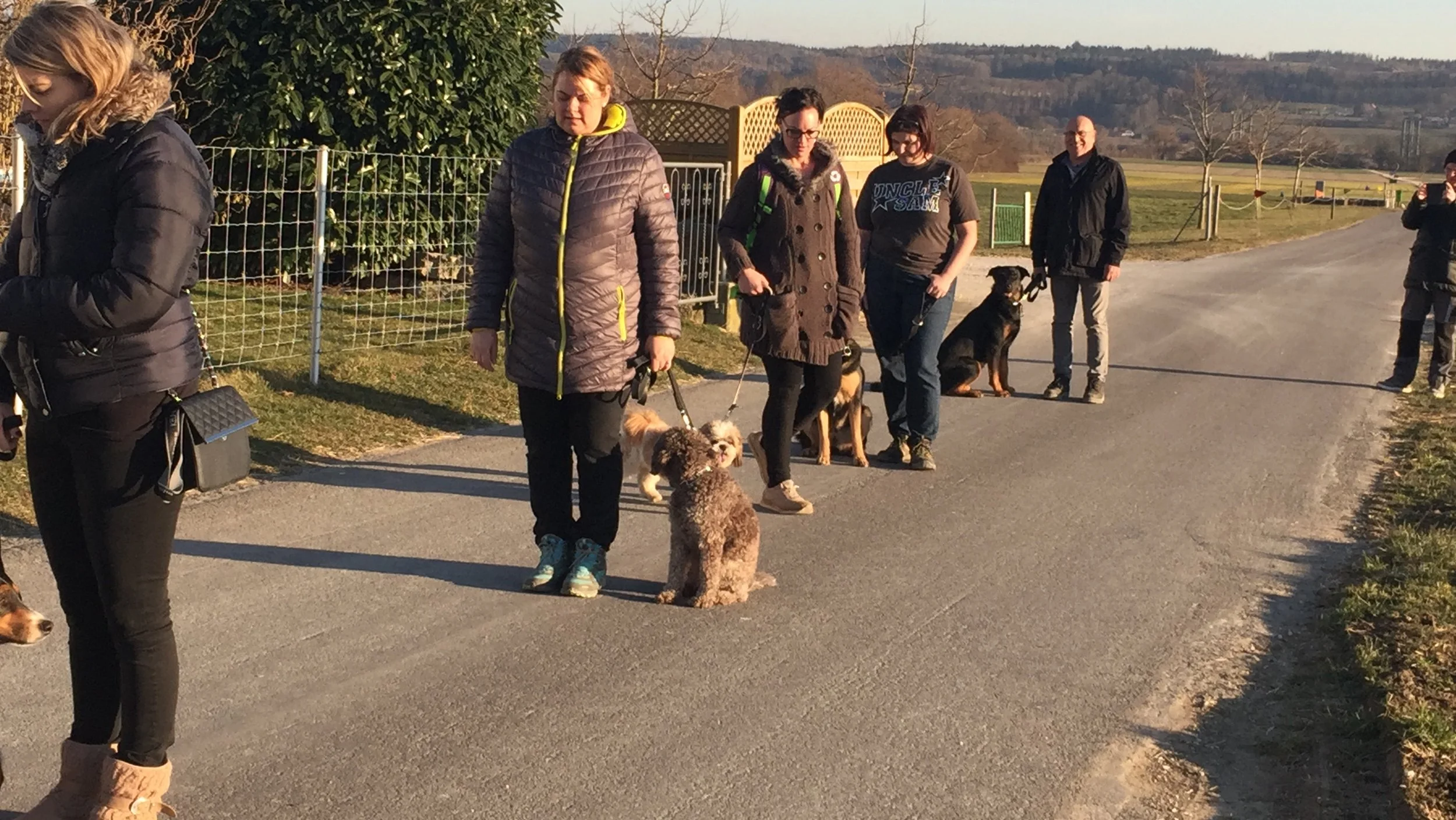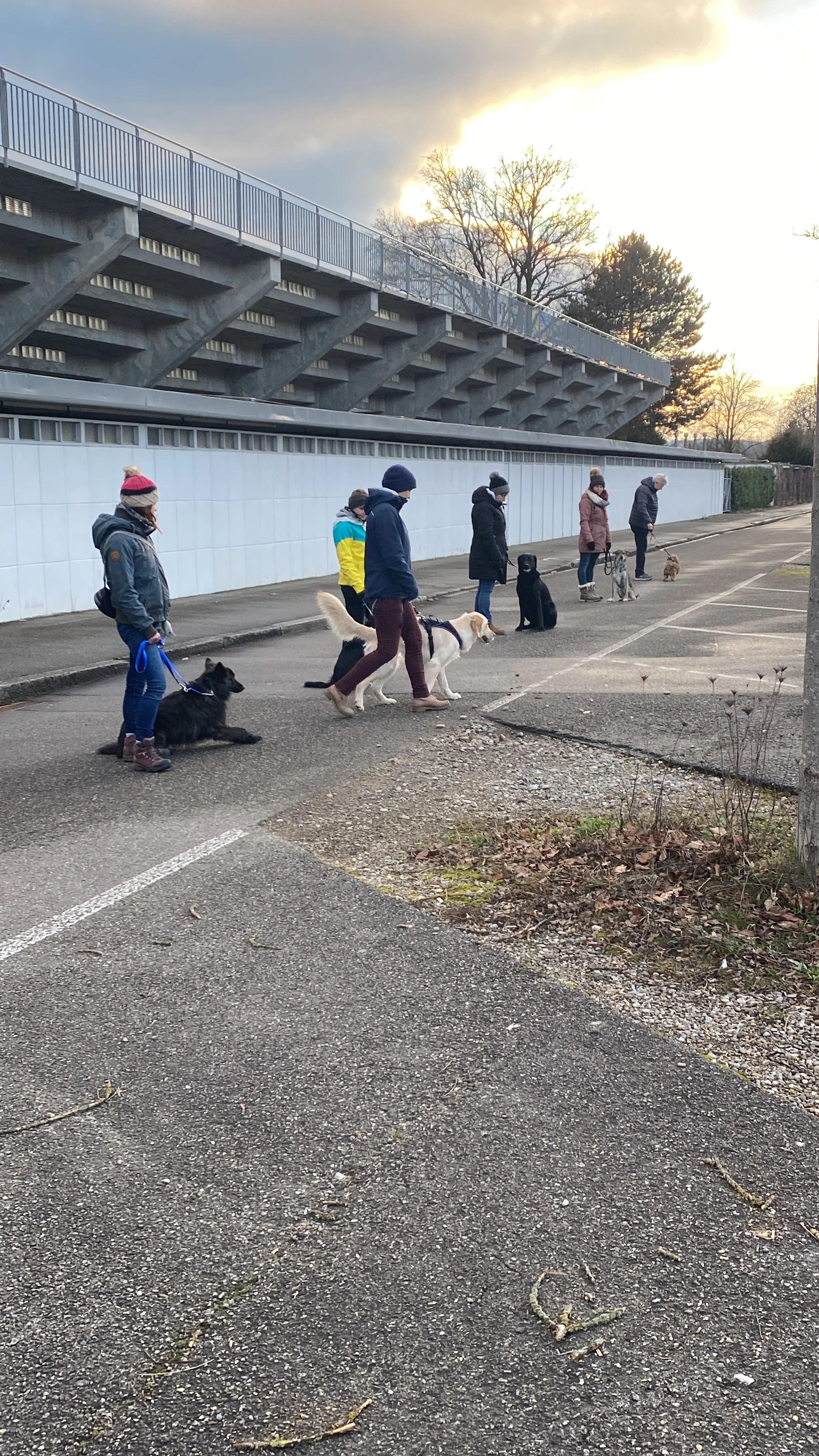 Jeder Kursteilnehmer hat nach oder während des Trainingskurses die Möglichkeit, an unserer Gruppenstunde teilzunehmen. Wir treffen uns an unterschiedlichen Orten, beispielsweise im Wald, am See, in der Stadt oder an häufig frequentierten Spazierwegen. Die Gruppenstunde dauert ca. 1 - 1,5 Stunden, findet jeweils einmal im Monat an einem Samstag morgen oder an einem Abend statt.